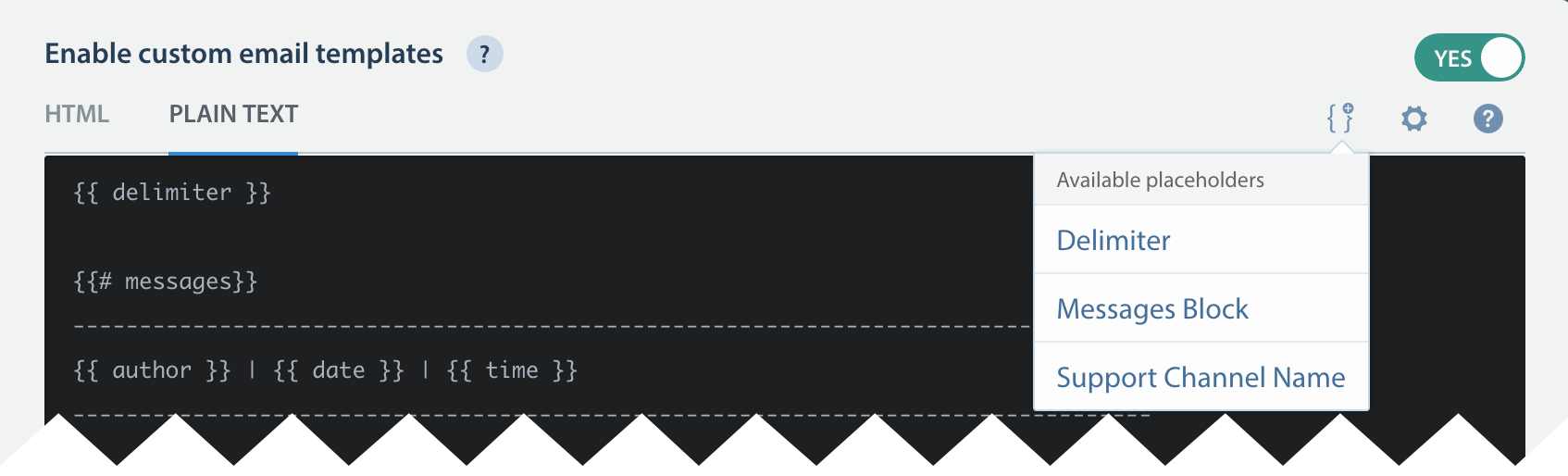 Goto the email support channel that you want to enable custom email templates for, and turn ON the custom templates toggle -