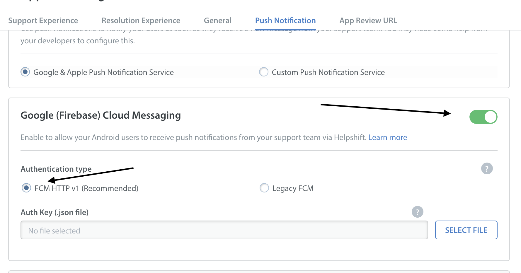 Configure push notifications via Helpshift